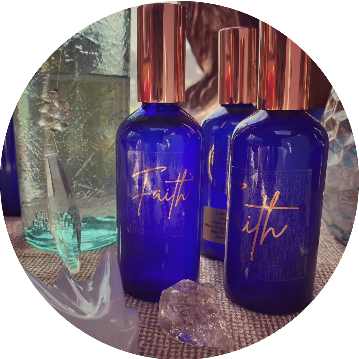 • Frankincense: an ancient temple healing oil. It enhances our connection to Spirit. It has one of the highest vibrations and serves as a protector and a sanctifier of space
